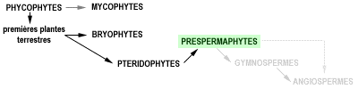 Les prespermaphytes dériveraient du groupe des ptéridophytes appelés psilophytinées. La grande caractéristique évolutive de ce groupe concerne la miniaturisation des gamétophytes et leur intégration dans des structures protectrices. Cela assure une meilleure adaptation au milieu terrestre. Ce mouvement évolutif avait été amorcé par les ptéridophytes hétérosporés et hétéroprothallés du type des selaginelles. Il conduit à la formation de structures reproductrices particulières : l'ovule, les étamines et les grains de pollens.