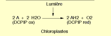 La photosynthèse ne peut pas théoriquement fonctionner (puisqu'il n'y a pas de source de carbone), et pourtant, on observe une production de dioxygène uniquement lorsque les chloroplastes sont incubés en présence de l'accepteur d'hydogène. Dans le même temps, l'accepteur d'hydrogène oxydé passe à l'état réduit.