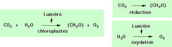 - l'autre de réduction du CO2 (CO2--->(CH2O) )