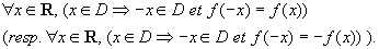 | Définitions. On dit que f est paire (resp impaire) si : |