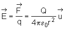 champ radial qui ne dépend que de la charge source et de la distance r par rapport à la source |