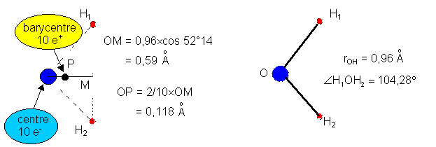 Dans l'hypothèse de ce modèle les barycentres des 10 électrons et des 10 protons sont distants de 0,118 angström, ce qui conférerait à notre molécule un moment dipolaire :