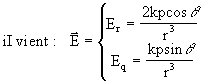 Précisons encore une fois que le vecteur champ électrique est défini dans le repère de coordonnées polaires par :