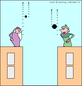Dans le cas de gauche, on considère que la seule force agissant sur la boule