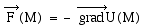 Remarque: Le travail de la force opposée au champ dépend du contour (C) entre M1 et M2; lorsque le champ est un champ de gradients, ce travail dépend du bi-point (M1, M2) : seules interviennent les valeurs des points de départ et d'arrivée. La variation DU est la même pour tout un ensemble de fonctions de points et n'importe quel élément de cet ensemble de fonctions donne le même travail. On appelle énergie potentielle de la particule p associée au champ de forces un élément quelconque de cet ensemble qui n' est définie qu' à une constante additive près. La fonction énergie potentielle est la fonction scalaire M Æ U(M) qui prend la valeur nulle pour un point M0 particulier.